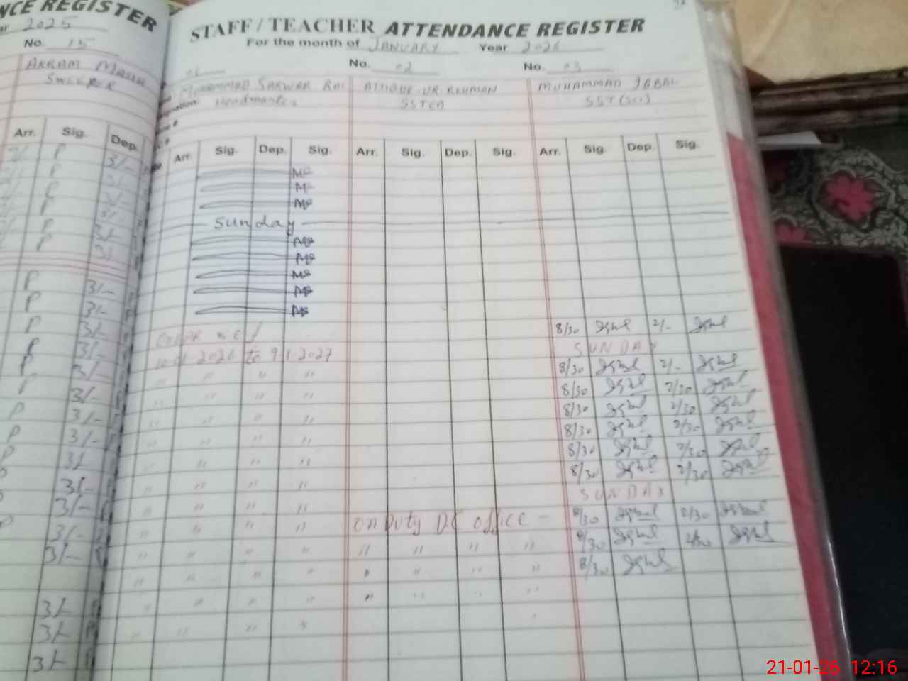 | CNIC | Full Name | Designation | R/C | Absence during last cal. month |