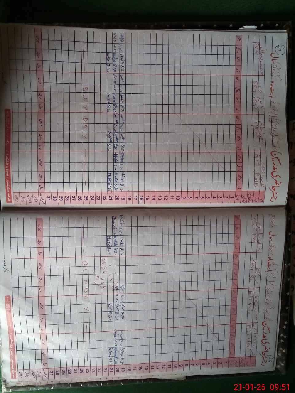 | CNIC | Full Name | Designation | R/C | Absence During Last Calender Month |