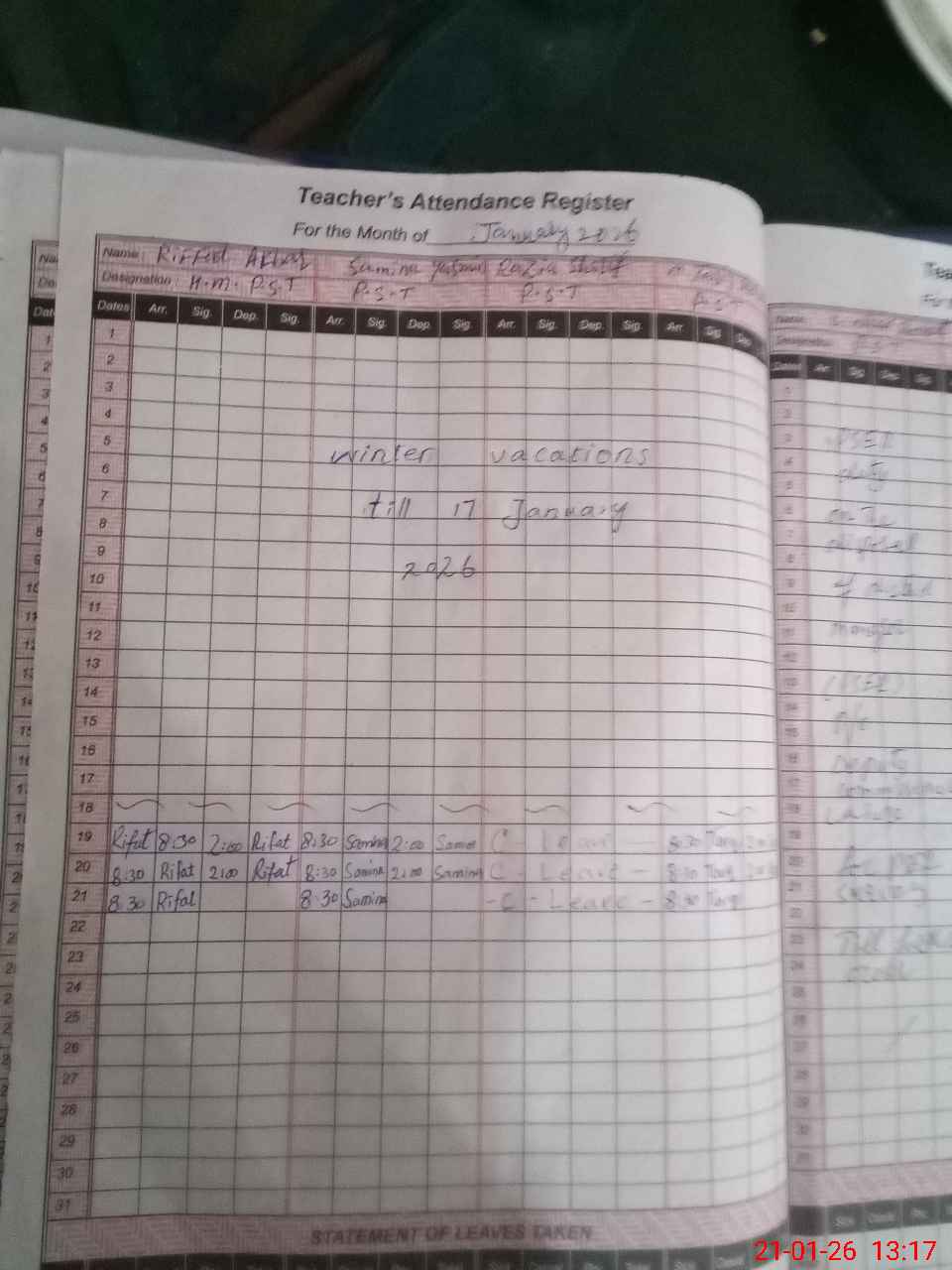 | 34**** | As**** Am**** | PST Science/Maths | Regular | 31 | 0 | 0 | 31 | 0 | 0 | 0 | 0 | 0 | Maternity |