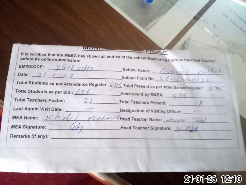 | EMIS Code: 34120040 | Name of School: GGHS VERPAL | |||