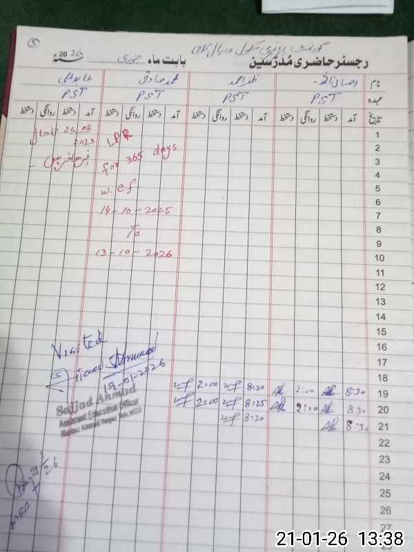 | 34**** | Ab**** Al**** | ESE (Arts) | Contract | 0 | 0 | 0 | 0 | 0 | 0 | 0 | 0 | 0 | Absent (Un-Authorized) |