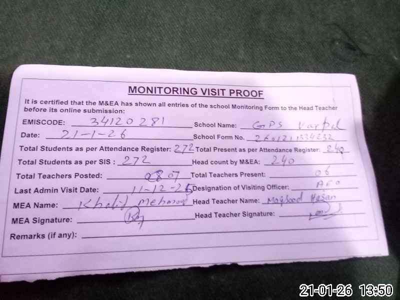 | EMIS Code: 34120281 | Name of School: GPS VERPAL | |||