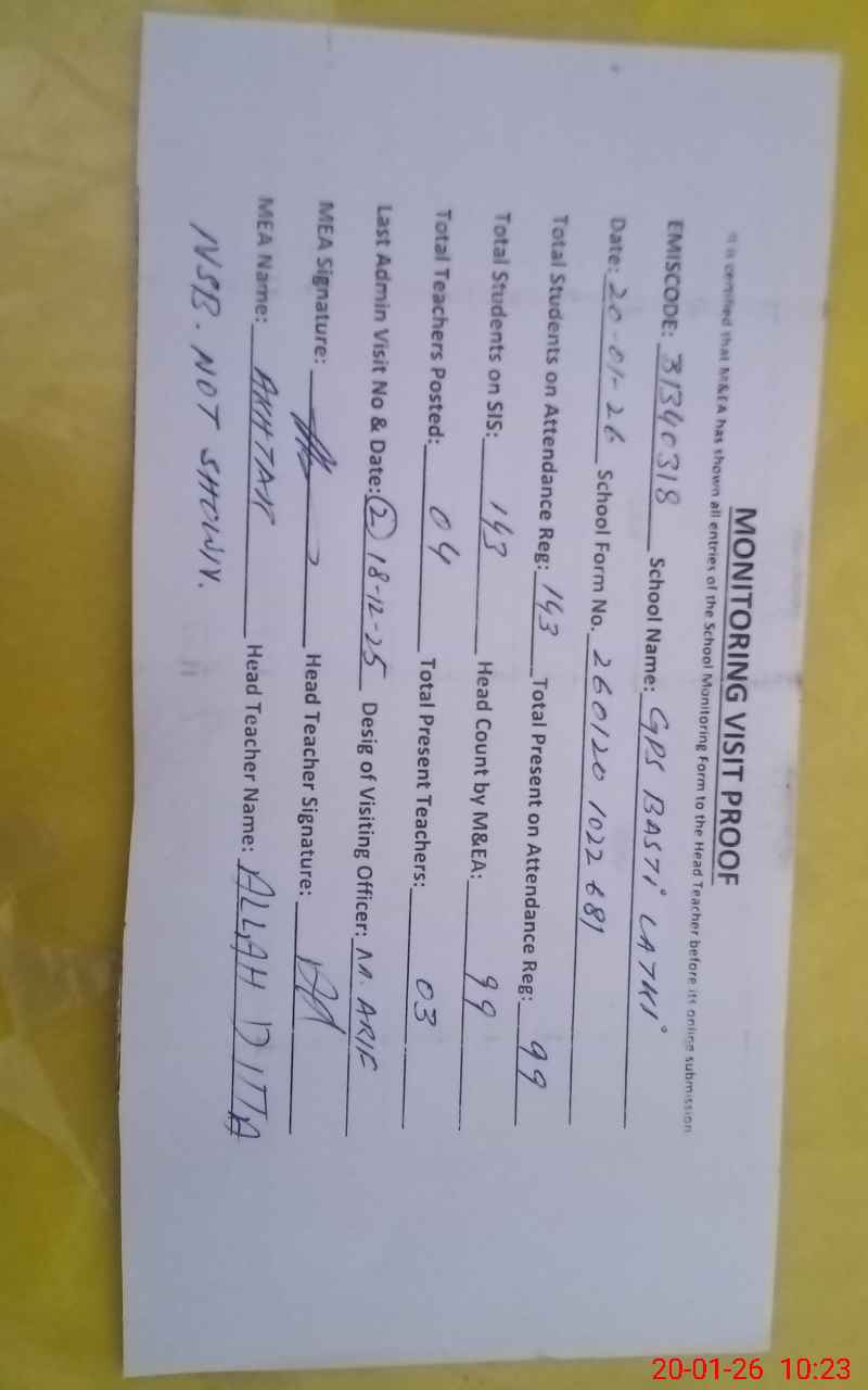 | EMIS Code: 31340318 | Name of School: GPS BASTI LATKI | |||