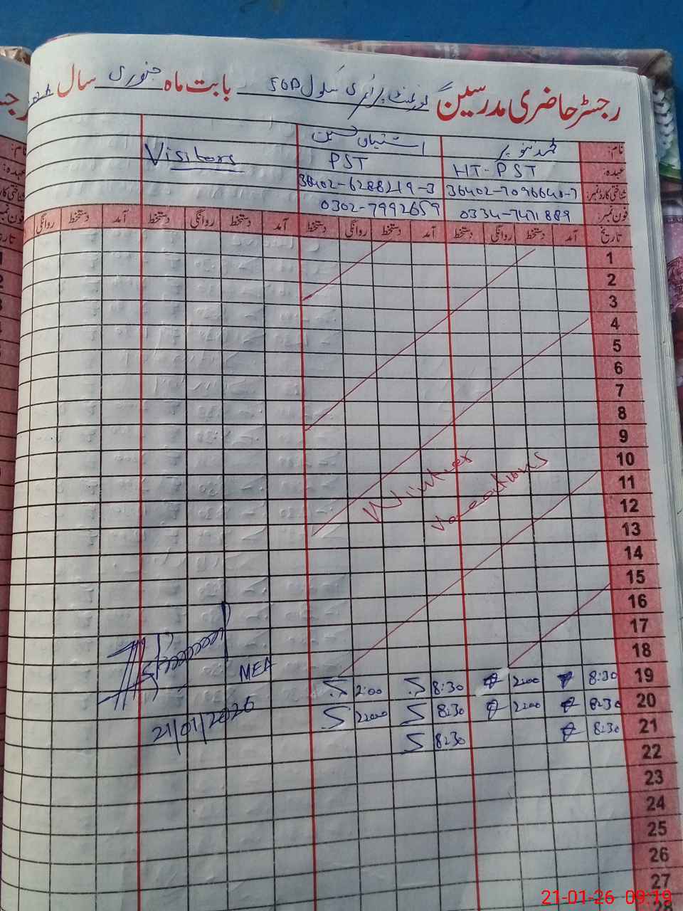 | Name: MTa**** Designation: (School Headmaster's/Headmistress's) PST Phone/Cell Number: 03**** |