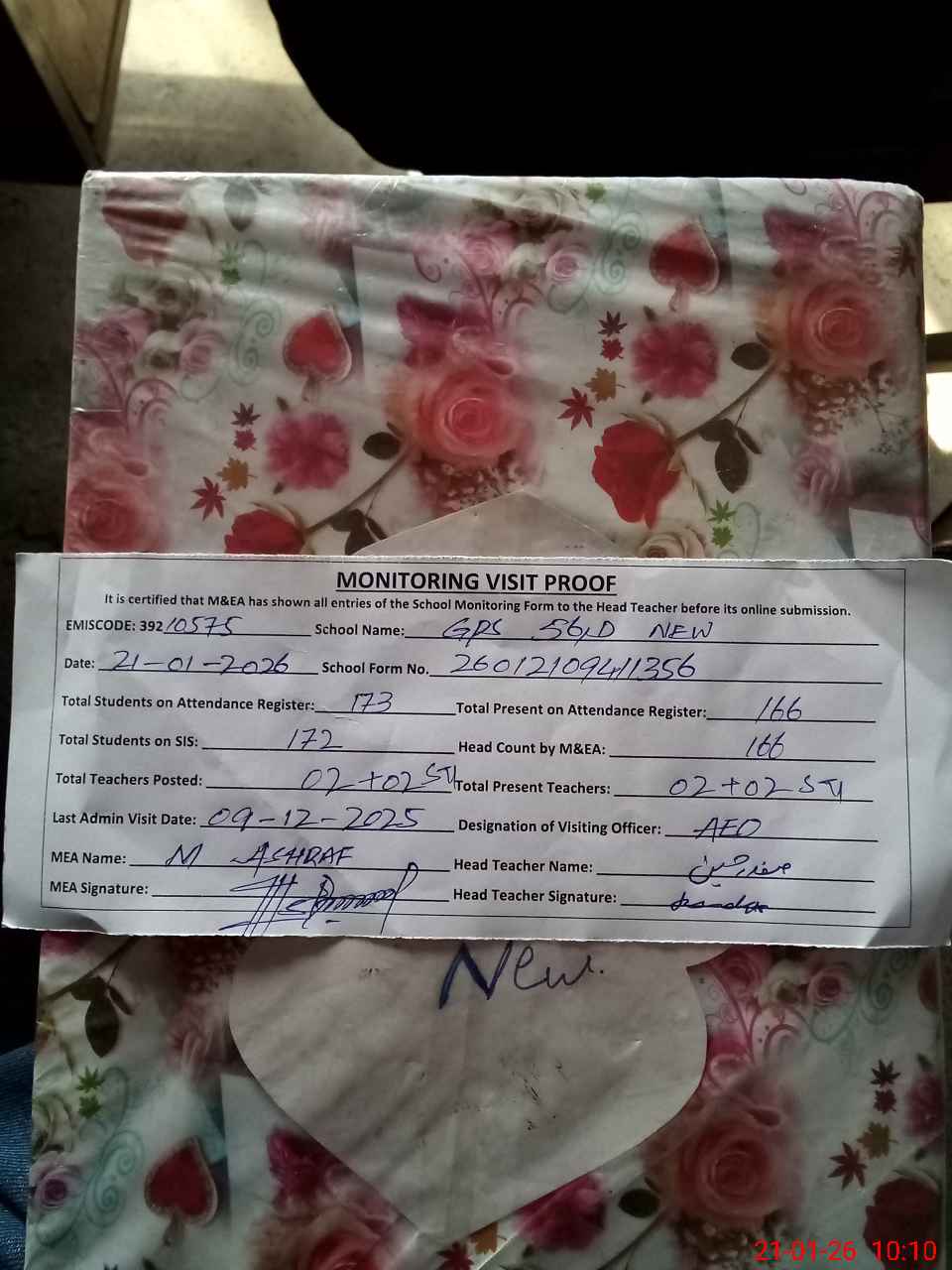 | EMIS Code: 39210575 | Name of School: GPS CHAK NO. 56/D (NEW) | |||