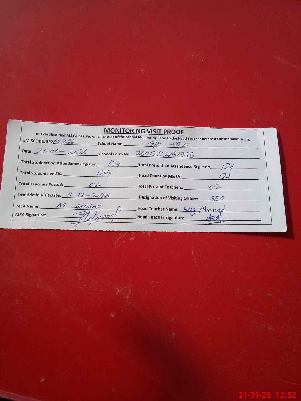 | EMIS Code: 39210286 | Name of School: GPS 58/D | |||