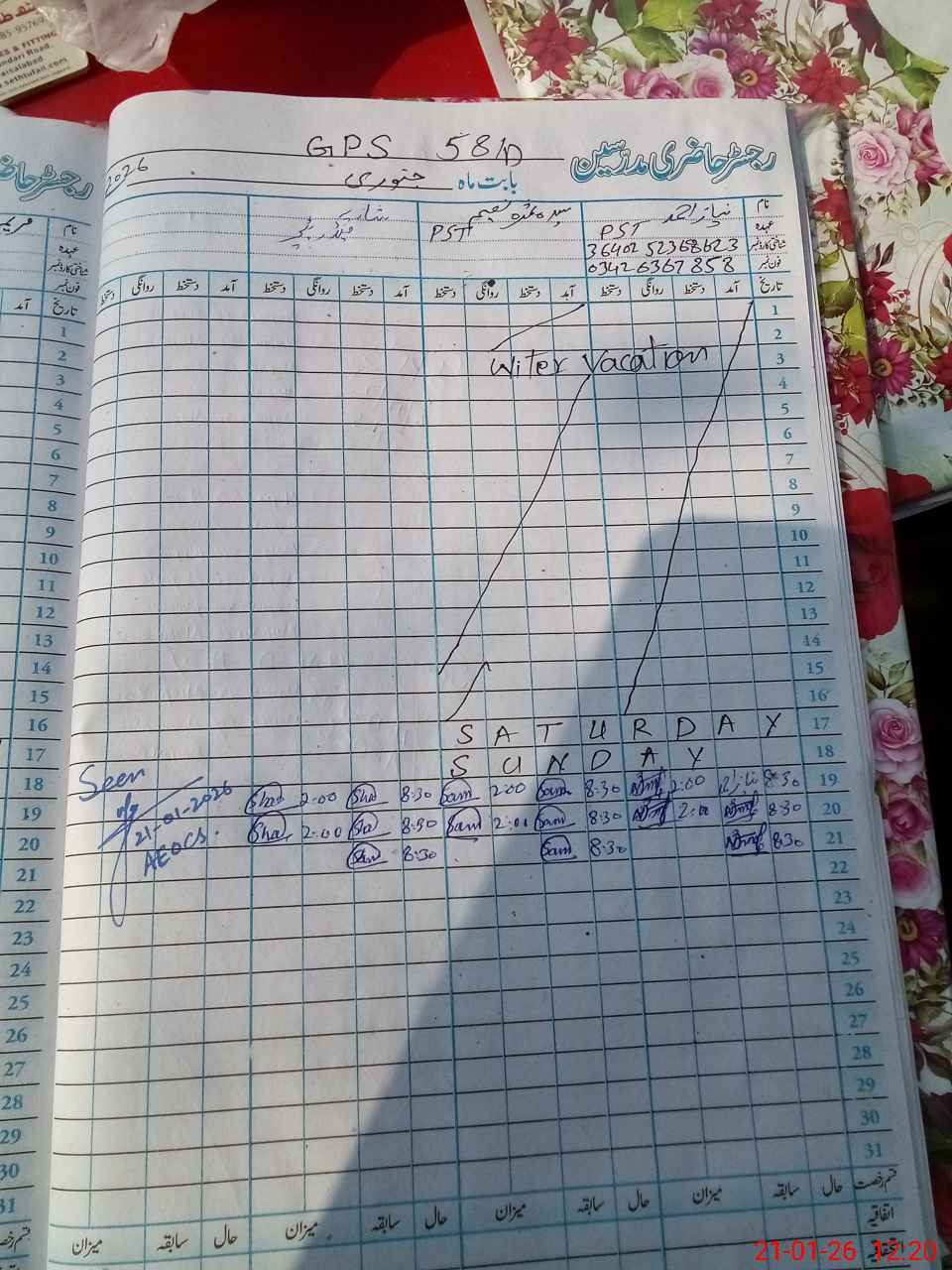 | Name: Sy**** Sa**** Na**** Designation: (School Headmaster's/Headmistress's) PST Phone/Cell Number: 03**** |