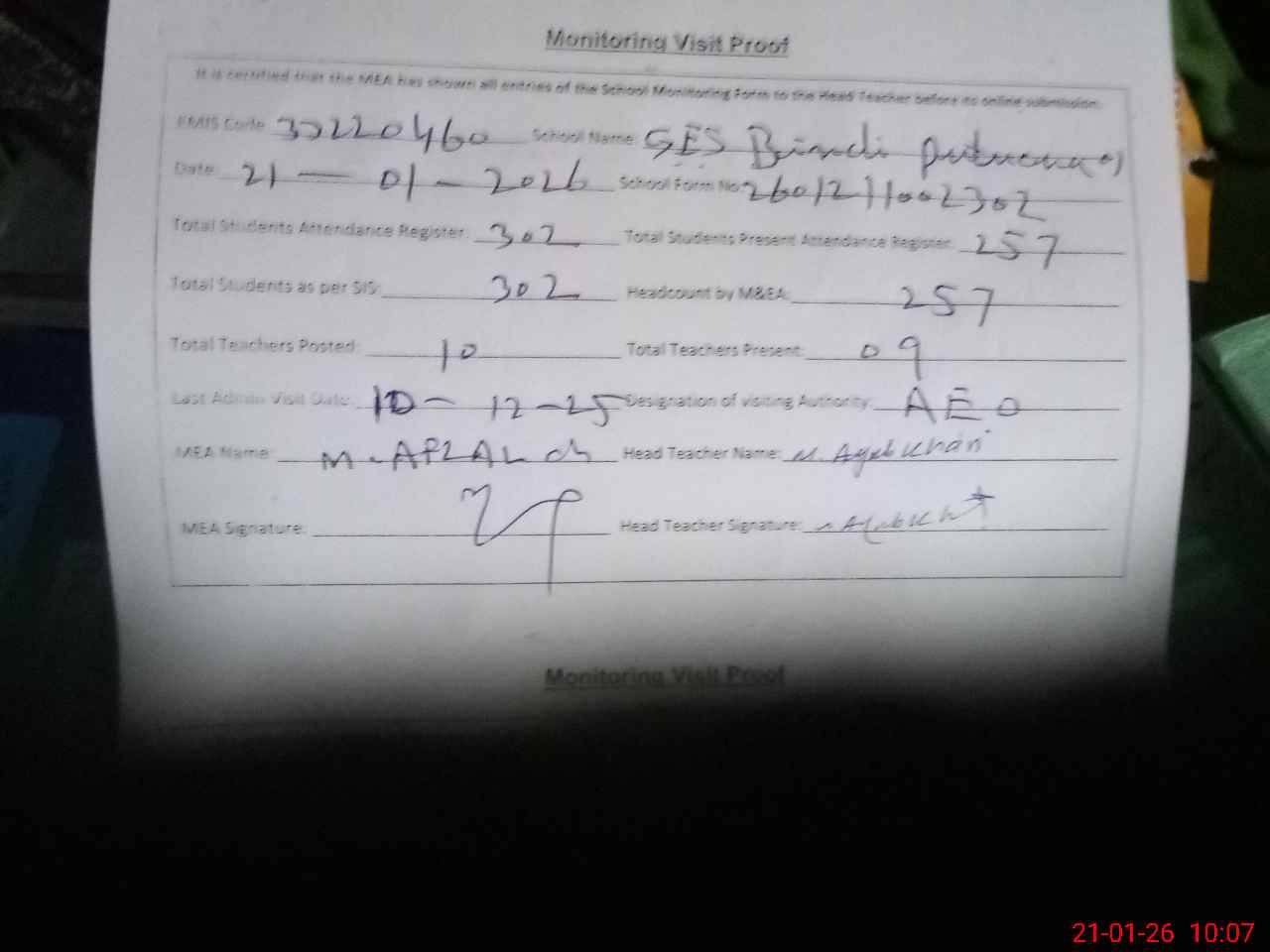 | Certified that this School was Inspected by the Undersigned MEA/DMO Today and the Information Stated Above is as Per Record. | |||||