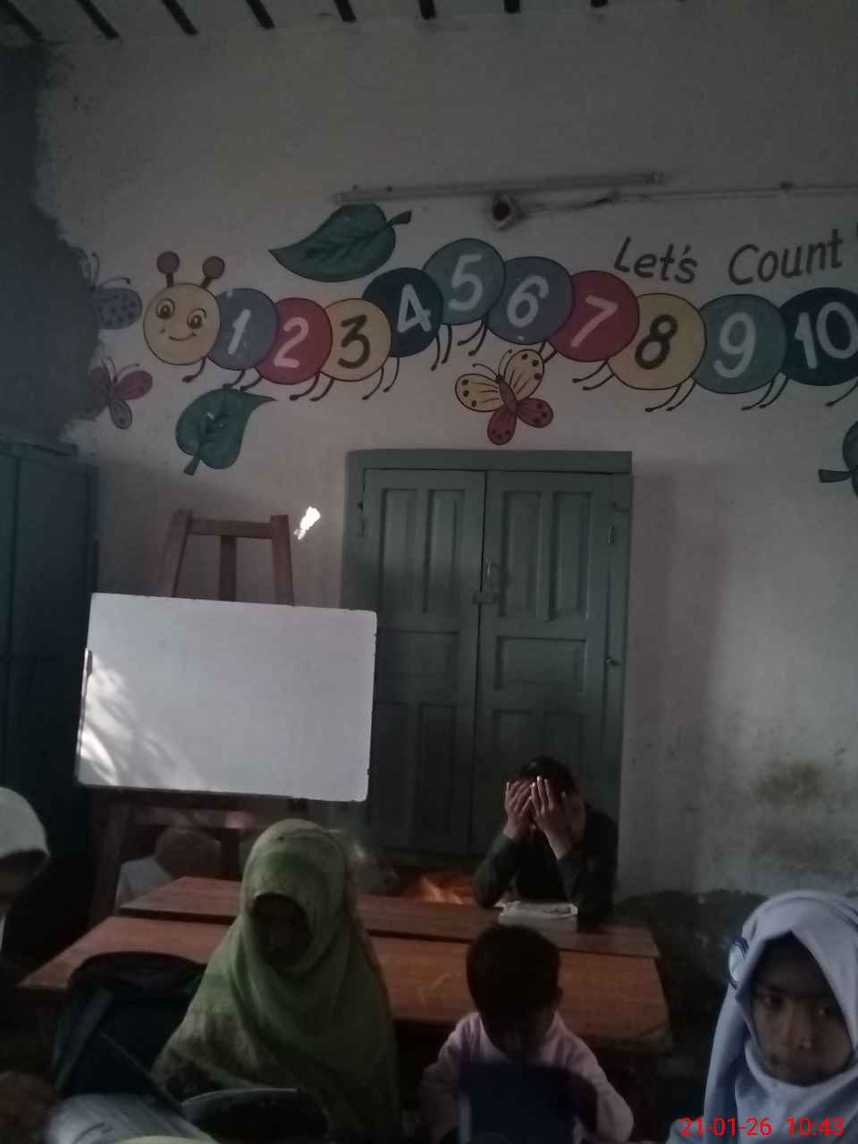 | Total no. of Classrooms: 2 No. of Classrooms Used for Teaching: 2 No. of Classrooms Storing Old Furniture, FTBs, etc: 0Comments if Any: Satisfactory |