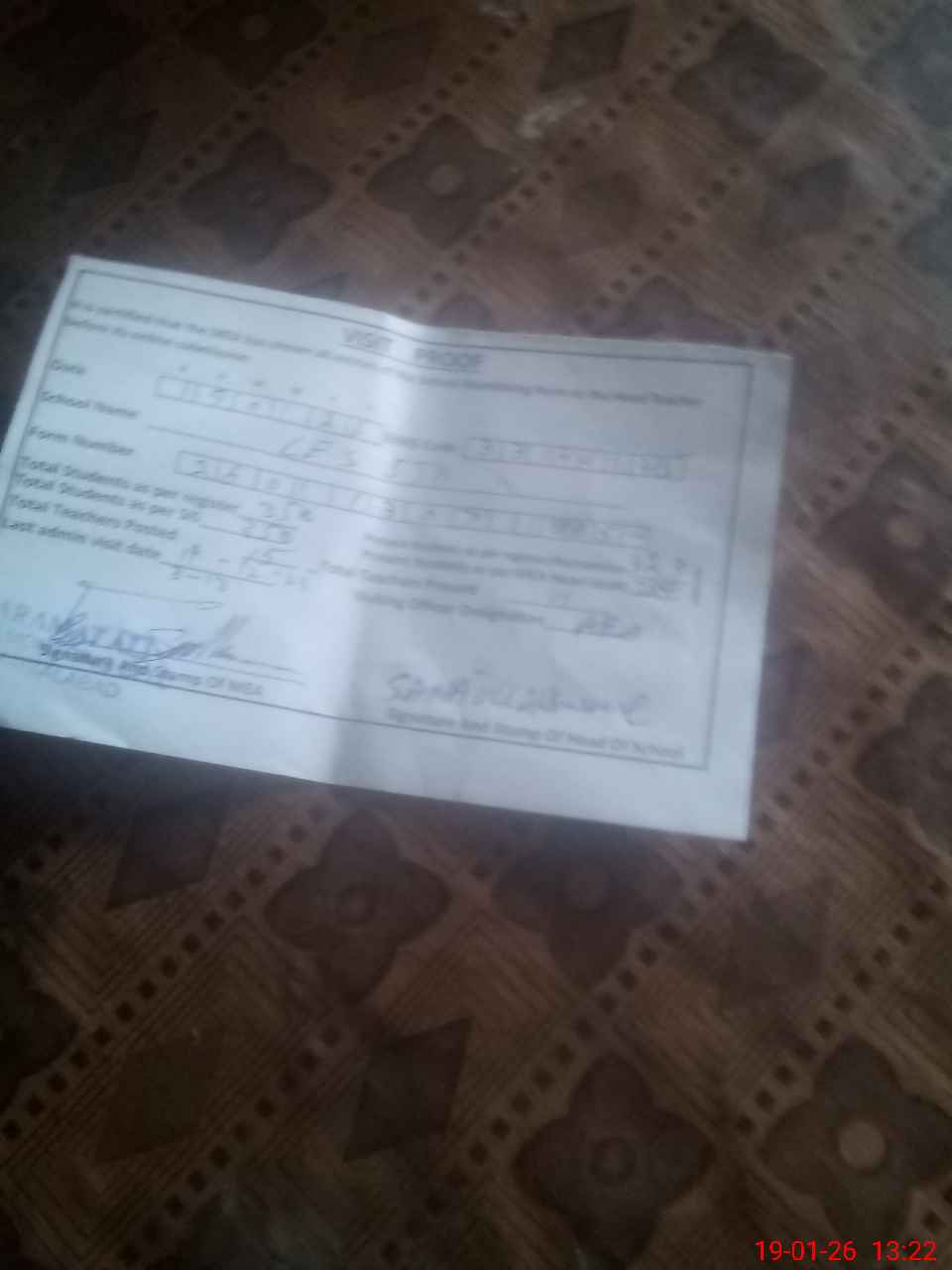 | Certified that this School was Inspected by the Undersigned MEA/DMO Today and the Information Stated Above is as Per Record. | |||||