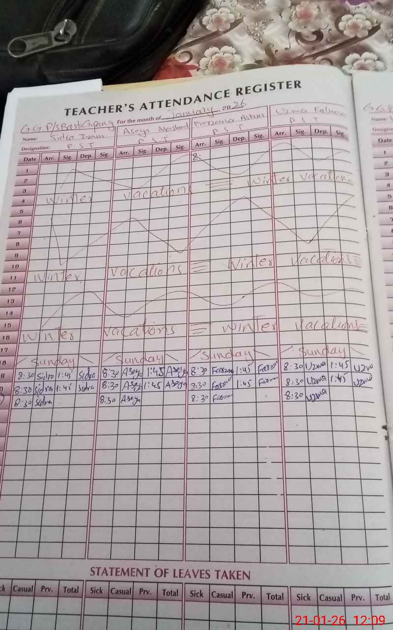 | Name: SI**** IR**** Designation: (School Headmaster's/Headmistress's) PST Phone/Cell Number: 03**** |