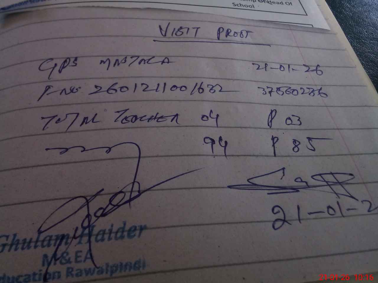 | Name: SA**** AF**** Designation: (School Headmaster's/Headmistress's) PST Phone/Cell Number: 03**** |