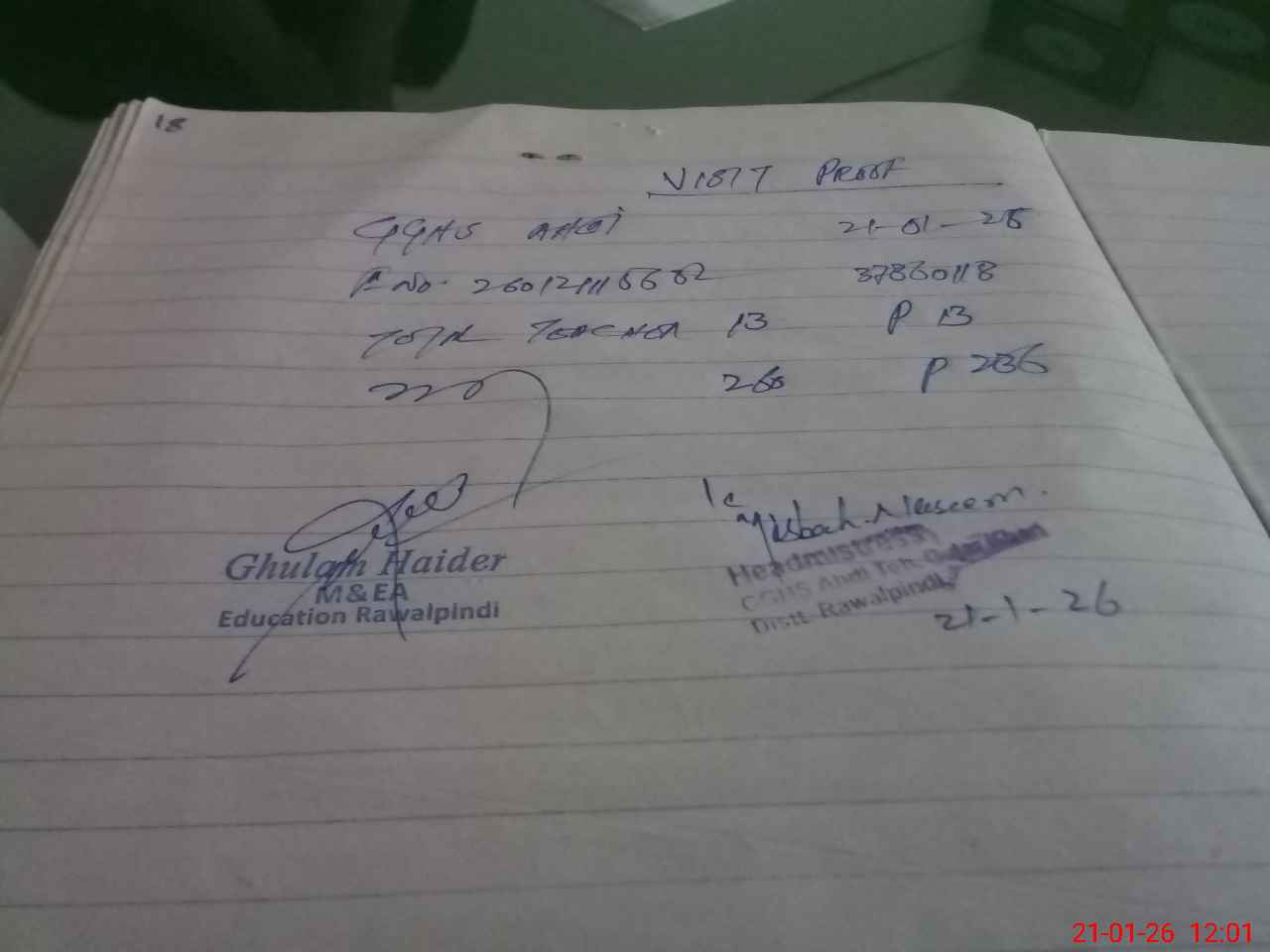 | Name: MI**** NA**** Designation: (School Headmaster's/Headmistress's) SST Phone/Cell Number: 03**** |
