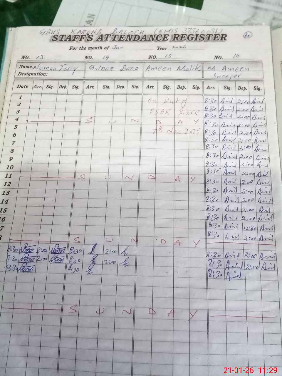 | EMIS Code: 37360031 | Name of School: GHS KARNUB BALOCH | |||
