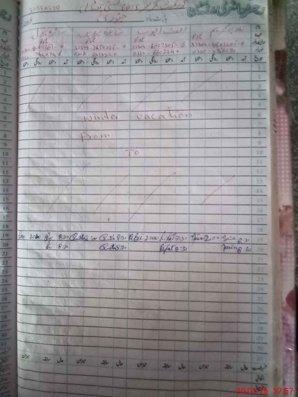 | CNIC | Full Name | Designation | R/C | Absence During Last Calender Month |