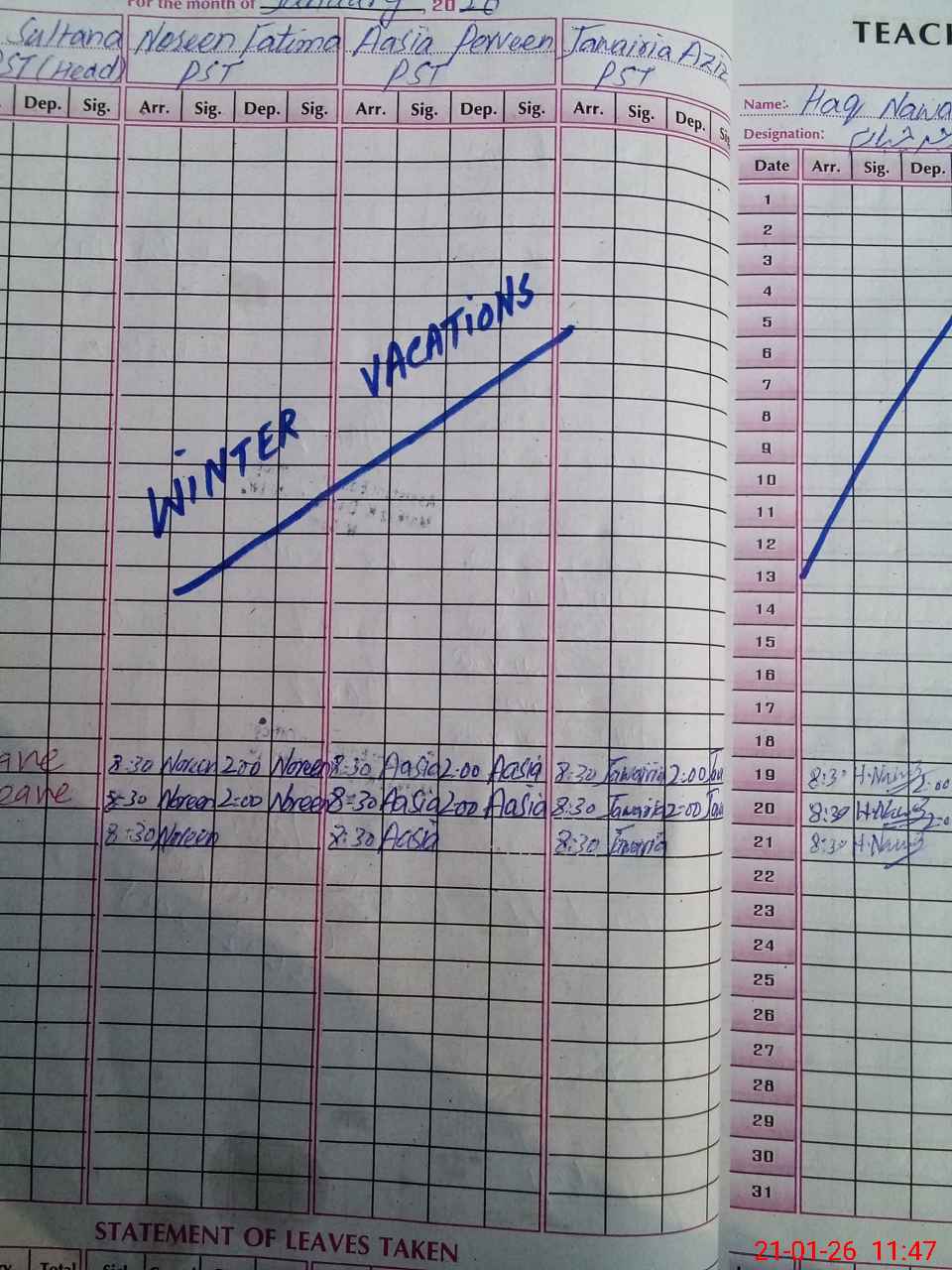 | Leave | Duty | Absent | Maternity | Medical | Ex- Pak |