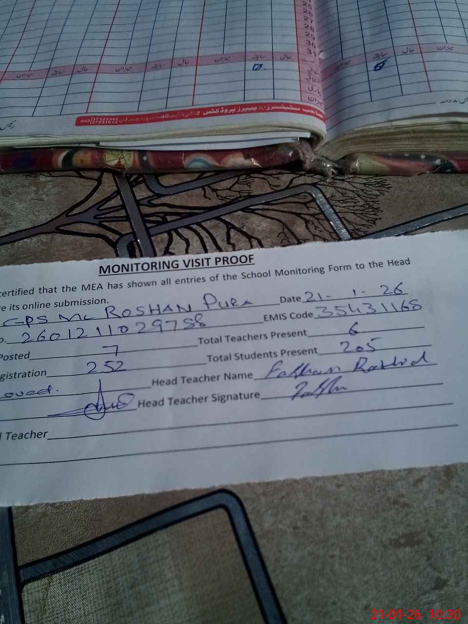 | EMIS Code: 35431168 | Name of School: GPS MC ROSHAN PURA | |||