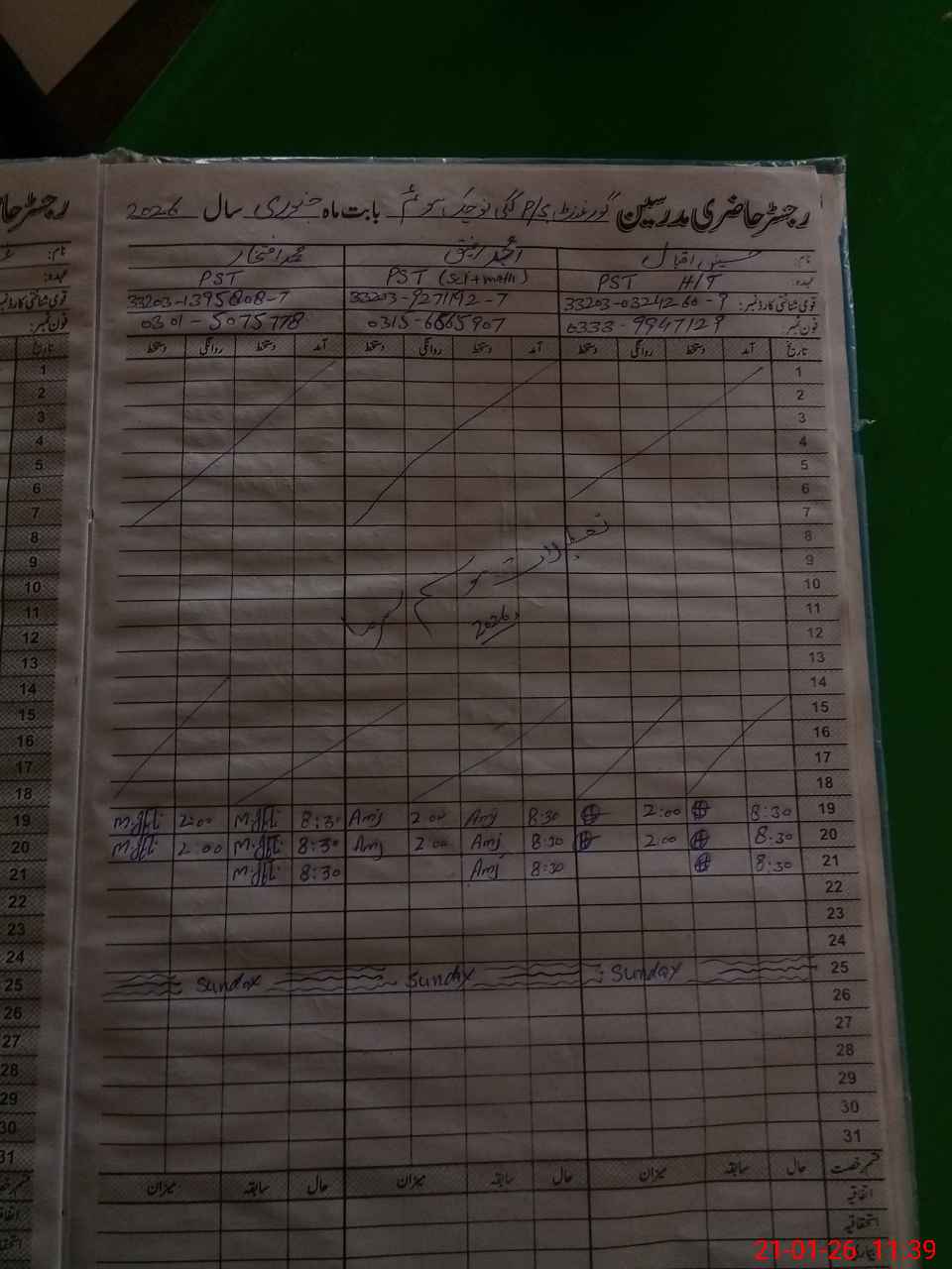 | Name: Ha**** Iq**** Designation: (School Headmaster's/Headmistress's) PST Phone/Cell Number: 03**** |