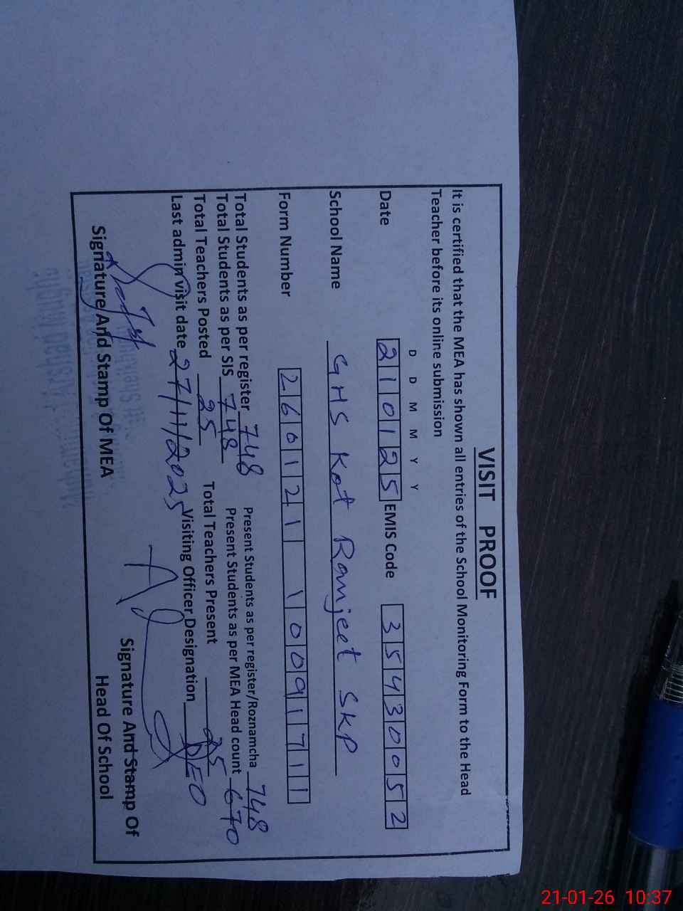 | EMIS Code: 35430052 | Name of School: GHS KOT RANJEET (SKP) | |||