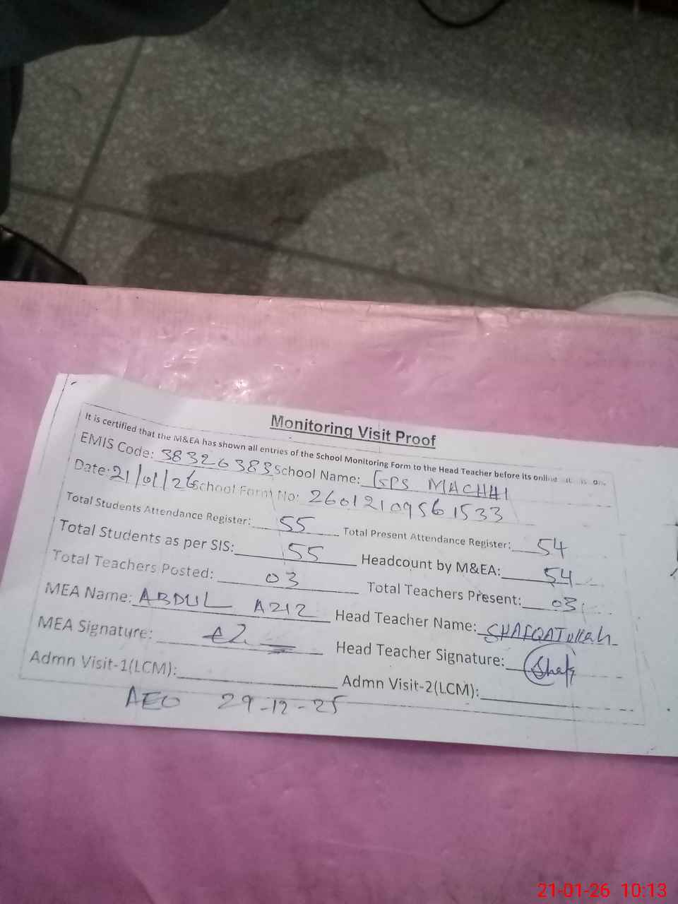 | EMIS Code: 38320383 | Name of School: GPS MACHHI WALA | |||