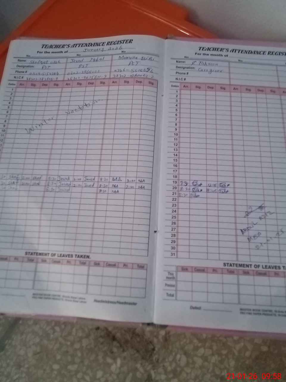 | Name: Sh**** ul**** Kh**** Designation: (School Headmaster's/Headmistress's) PST Phone/Cell Number: 03**** |