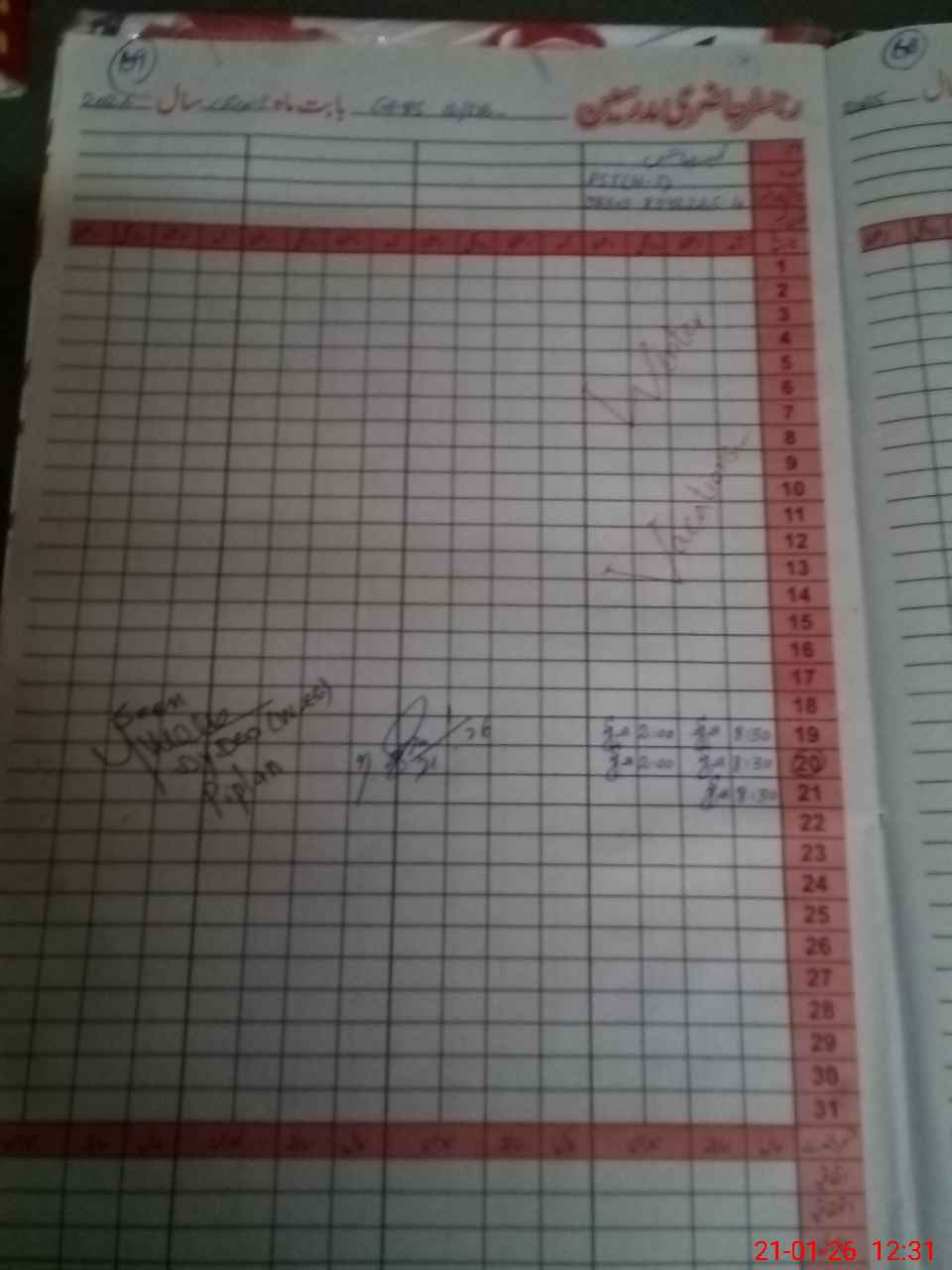 | CNIC | Full Name | Designation | R/C | Absence During Last Calender Month |