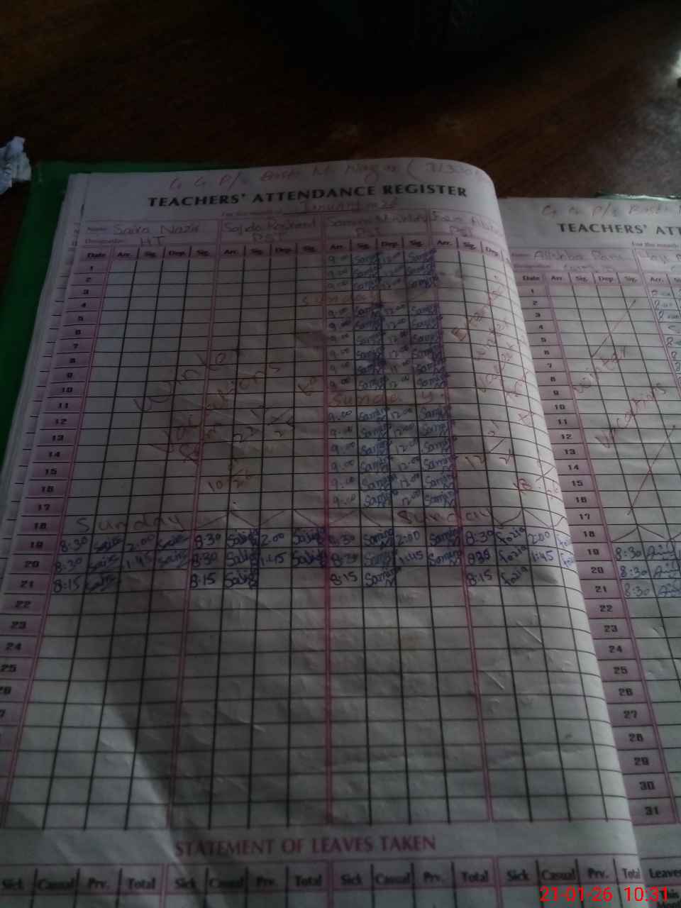 | Leave | Duty | Absent | Maternity | Medical | Ex- Pak |