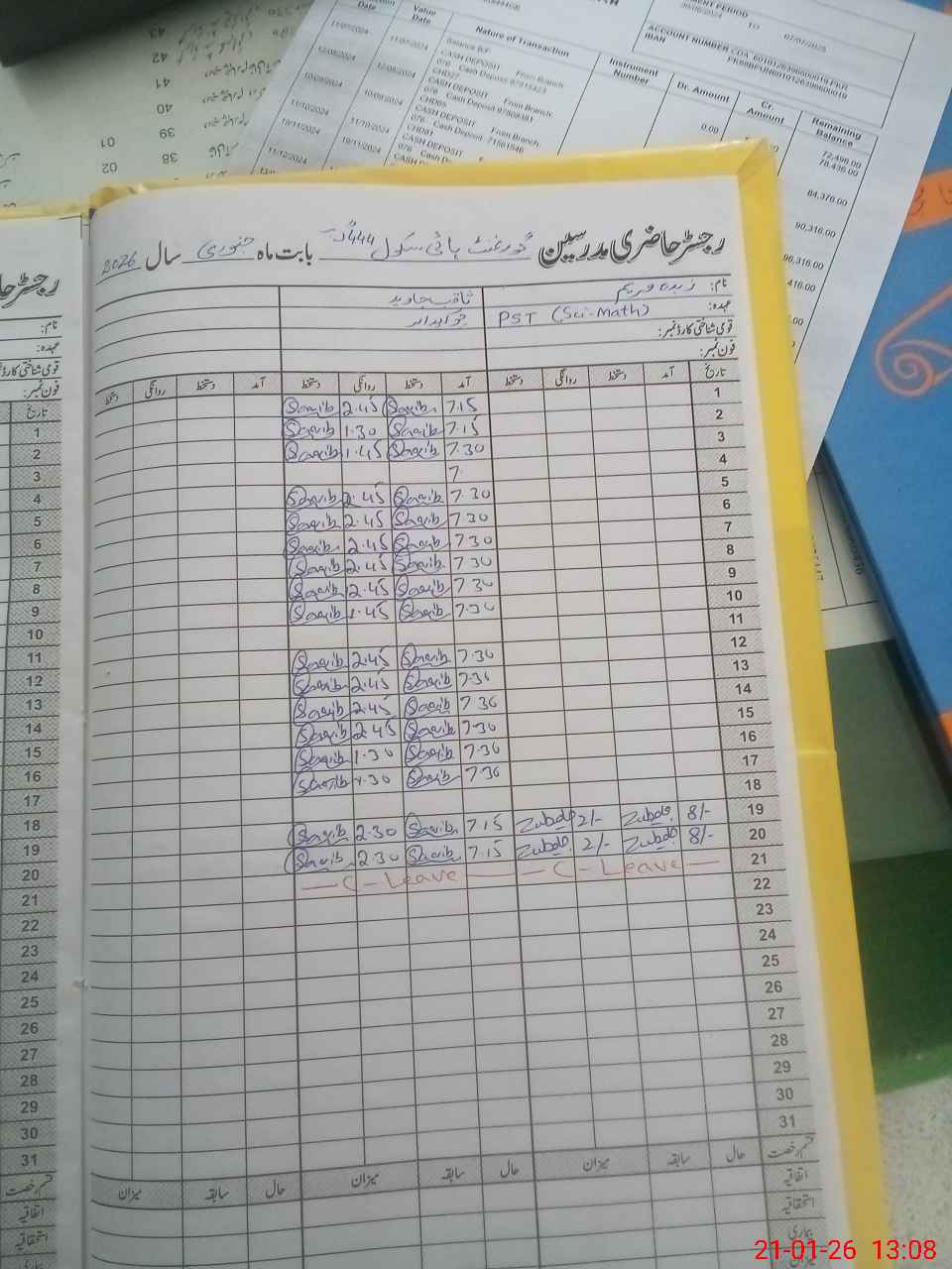| 33**** | Zu**** Ma**** | PST Science/Maths | Regular | 0 | 0 | 0 | 0 | 0 | 0 | 0 | 0 | 0 | Casual |