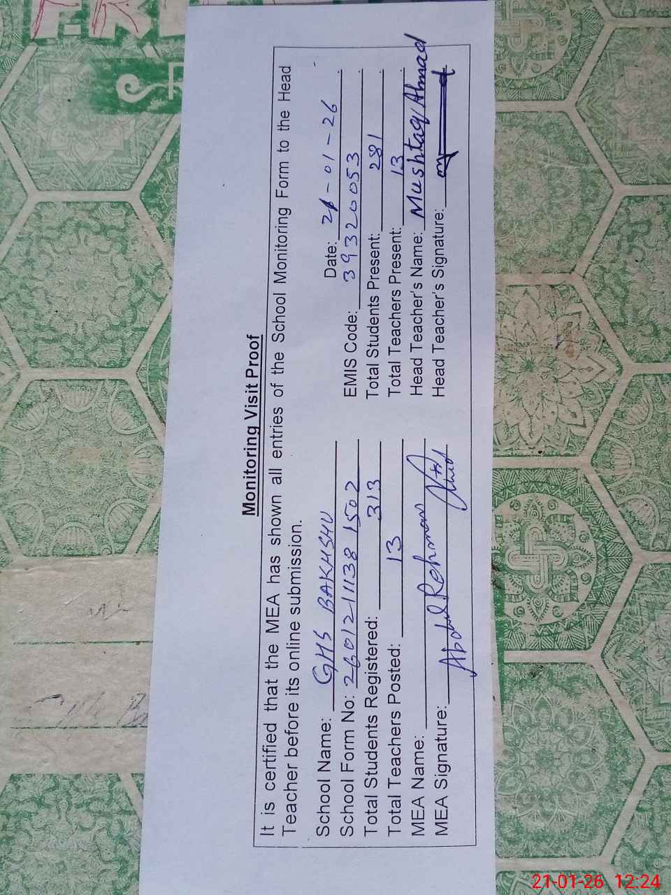 | EMIS Code: 39320053 | Name of School: GHS BAKHSHU | |||