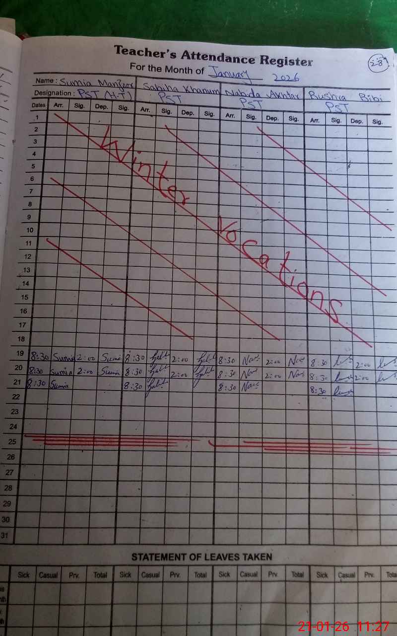 | Monitoring Date: 21-01-2026 | Start Time: 21-01-2026 11:21 AM | End Time: 21-01-2026 11:38 AM | Name of MEA: Za**** Ah**** | |