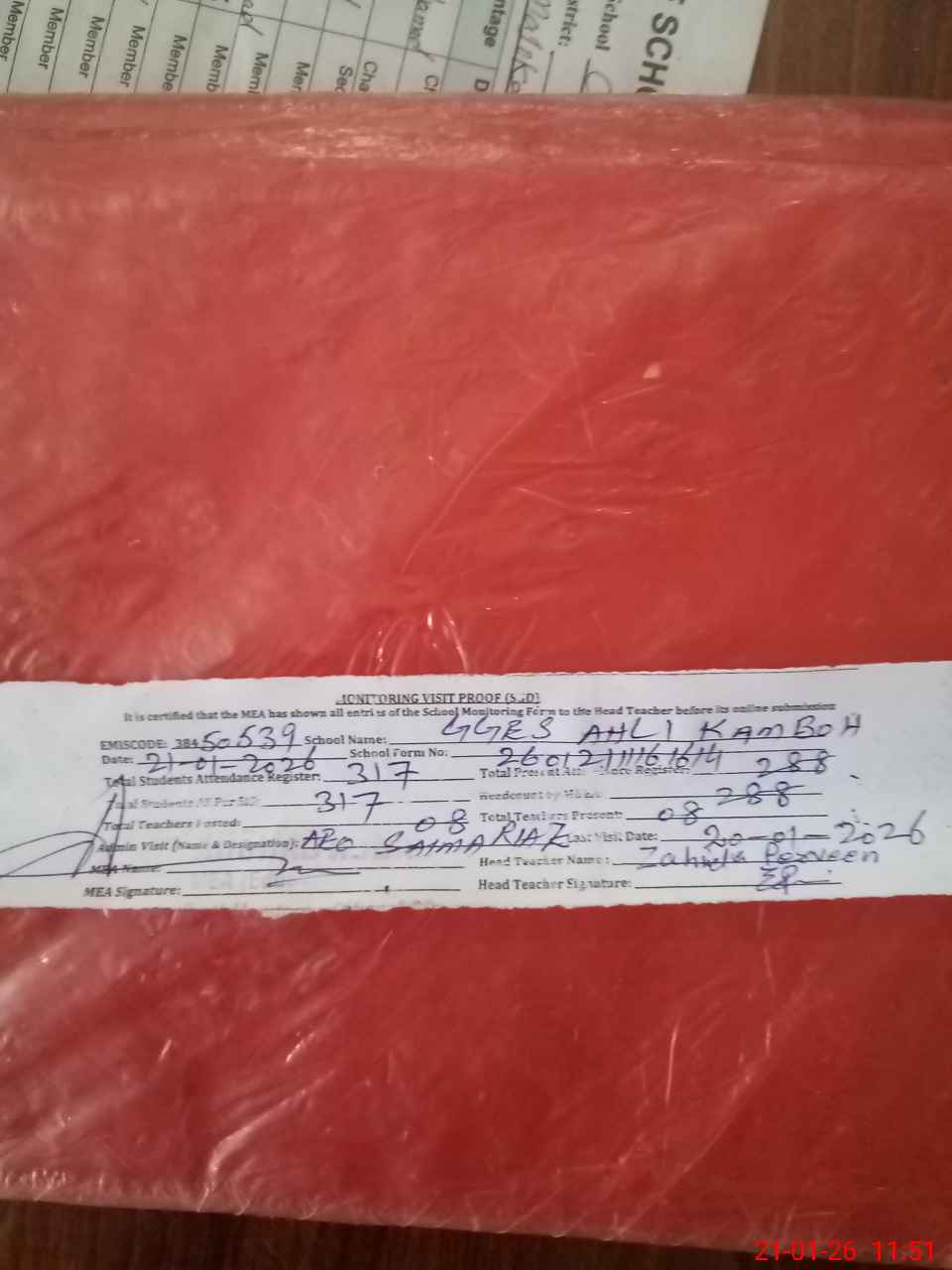 | Attendance Register | Head Teacher | MEA with School | Visit Proof |