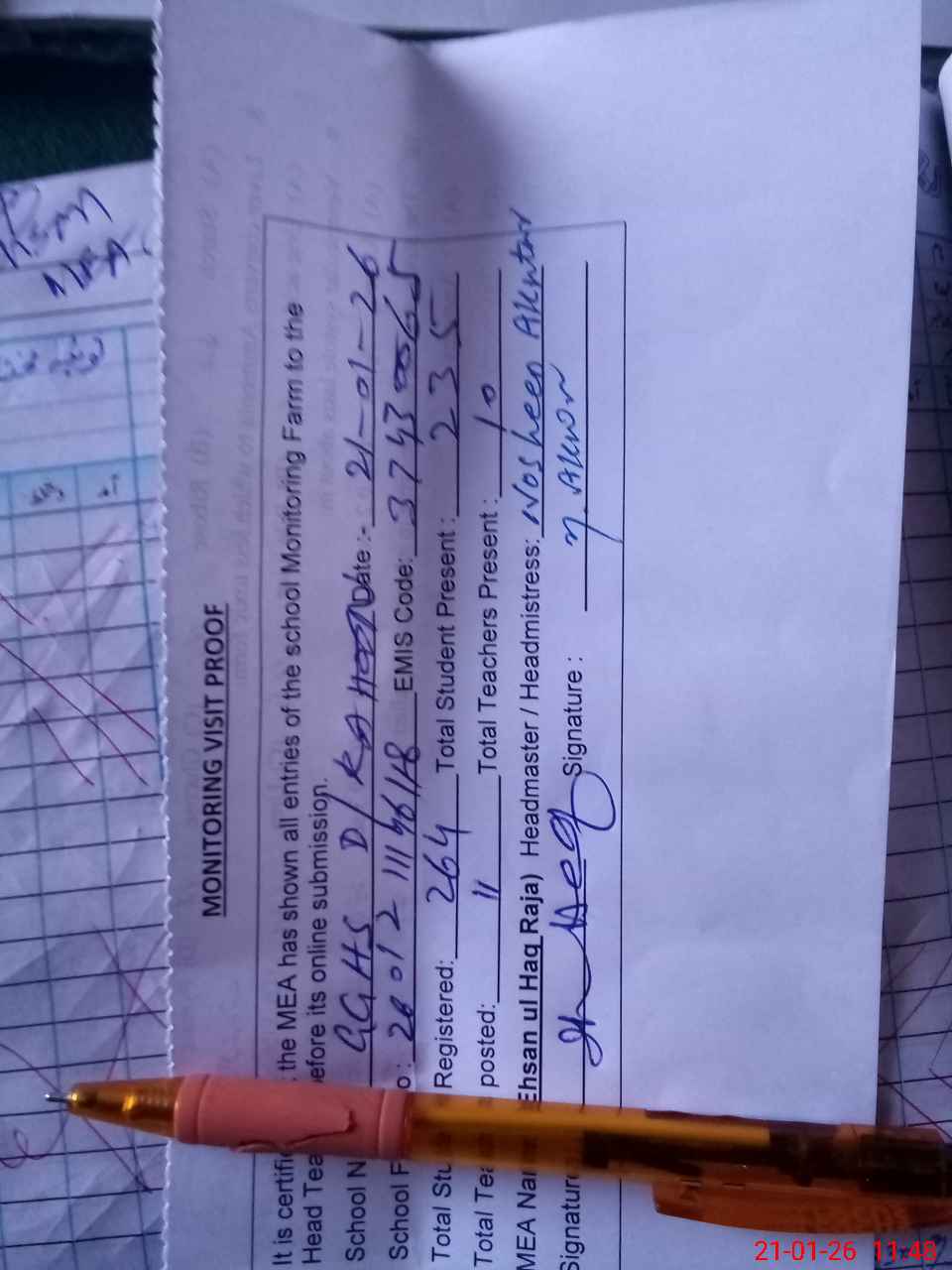 | Certified that this School was Inspected by the Undersigned MEA/DMO Today and the Information Stated Above is as Per Record. | |||||