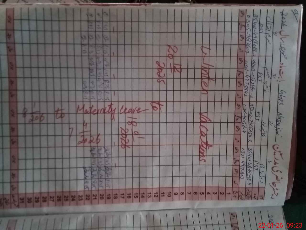 | 35**** | Ka**** No**** | PST Science/Maths | Regular | 0 | 0 | 0 | 0 | 0 | 0 | 0 | 0 | 0 | Paternity |