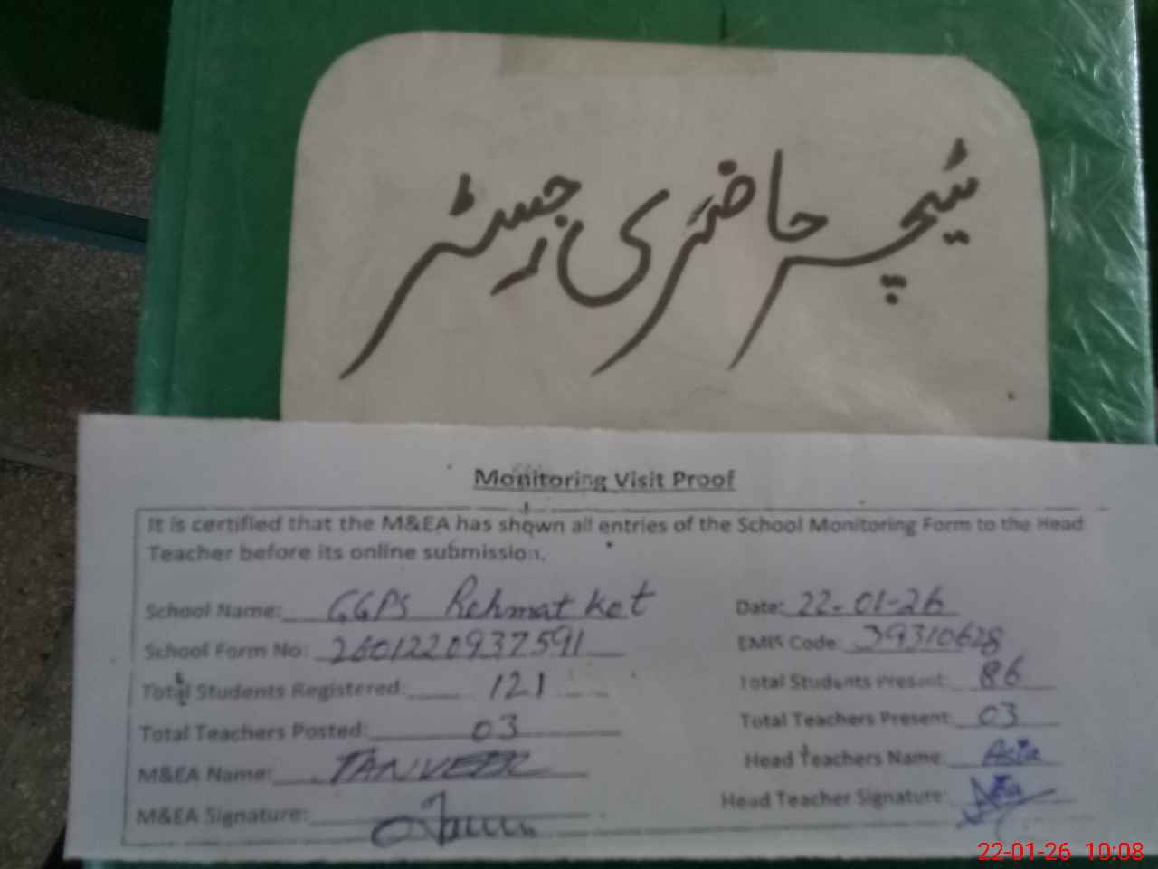 | EMIS Code: 39310628 | Name of School: GGPS REHMAT KOT | |||