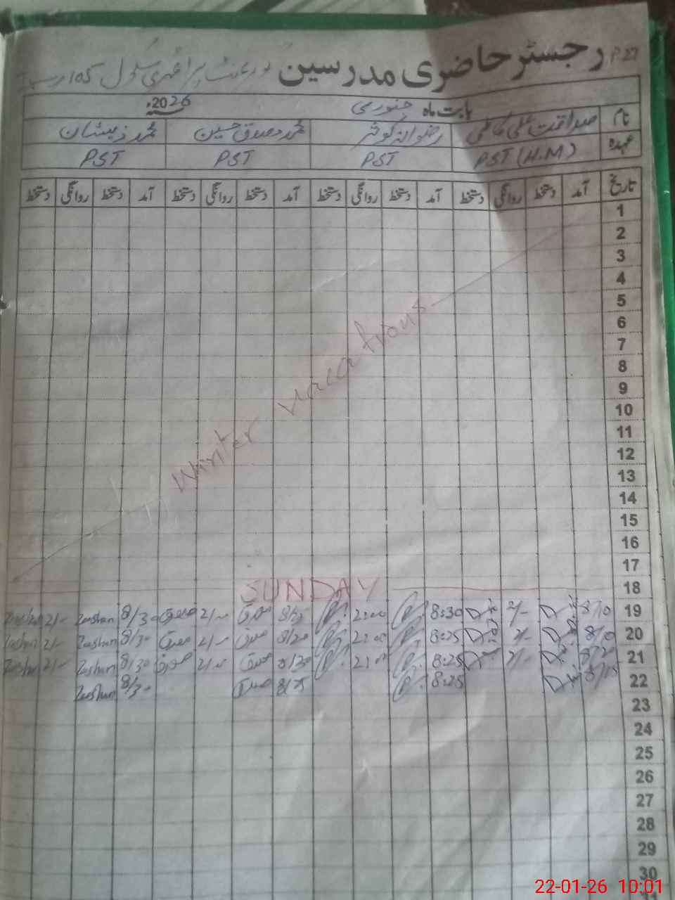 | Name: SA**** AL**** Designation: (School Headmaster's/Headmistress's) PST/PTC/JV Phone/Cell Number: 03**** |