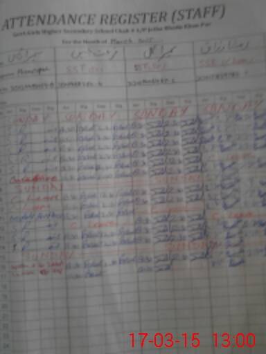 | CNIC | Full Name | Designation | R/C | Absence During Last Calender Month |