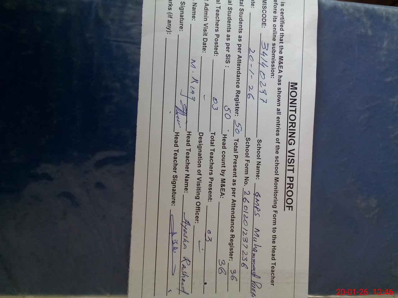 | EMIS Code: 34140297 | Name of School: GMPS MUHAMMAD PURA | |||