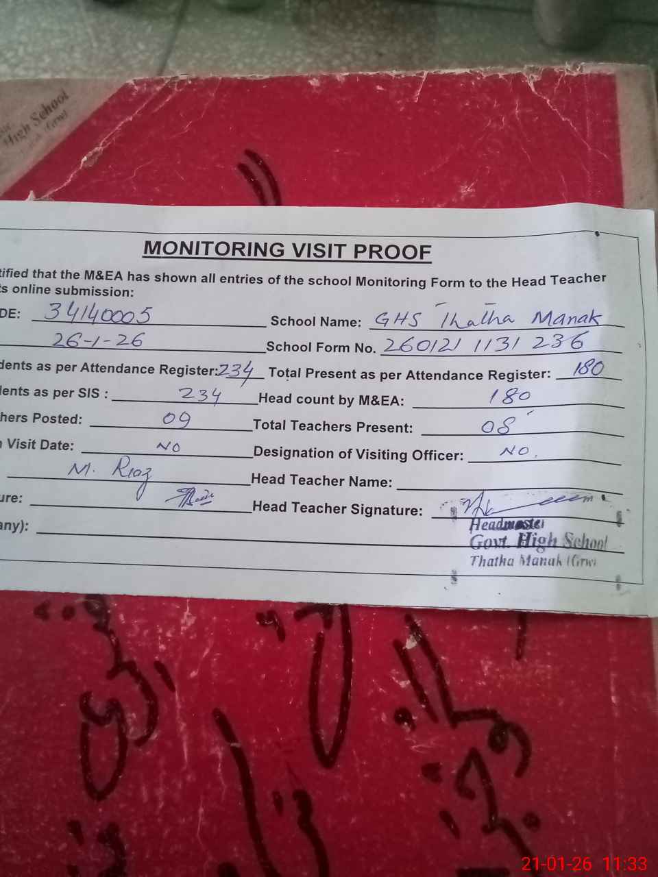 | EMIS Code: 34140005 | Name of School: GHS THATHA MANAK | |||