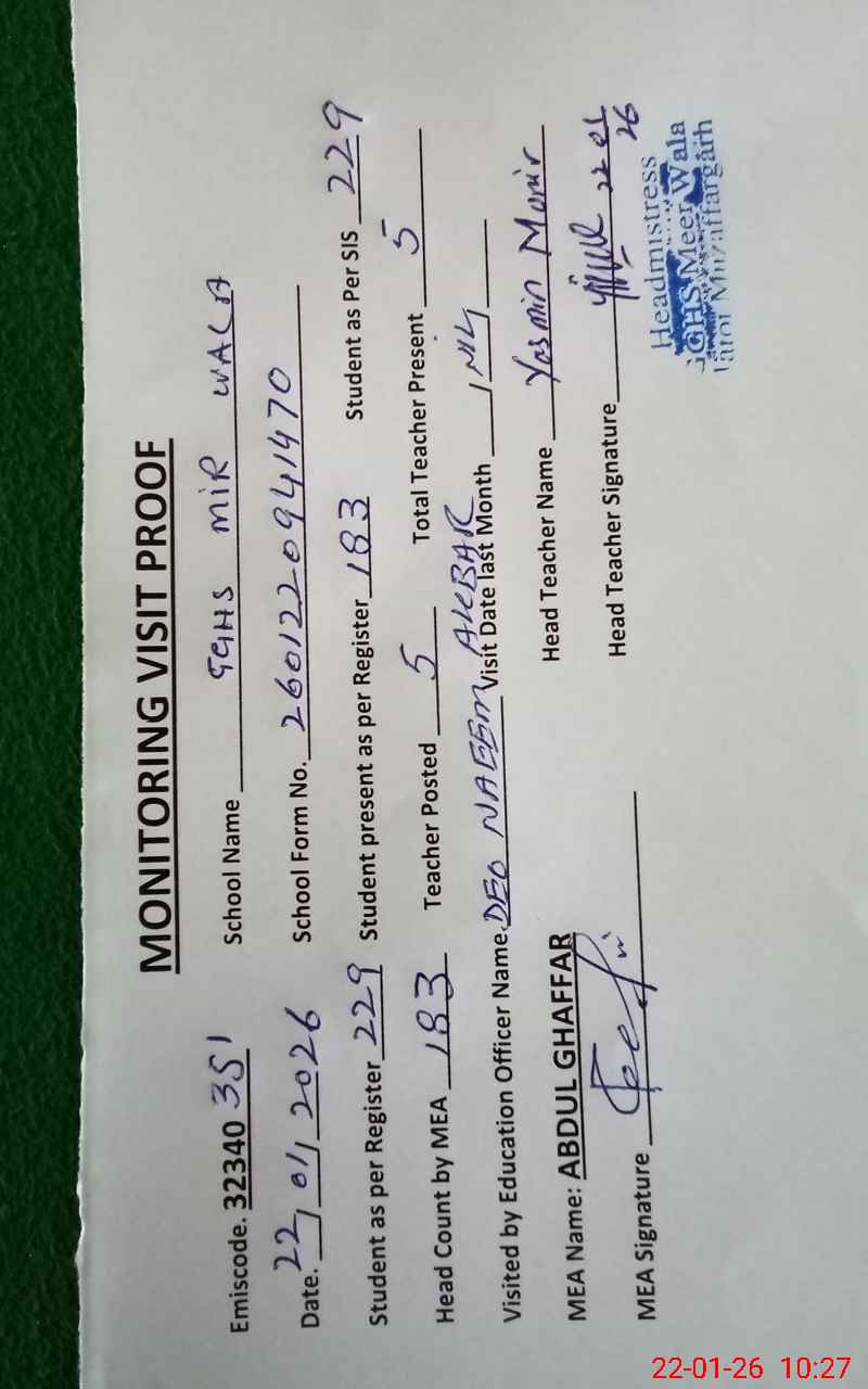 | EMIS Code: 32340351 | Name of School: GGHS MEER WALA | |||