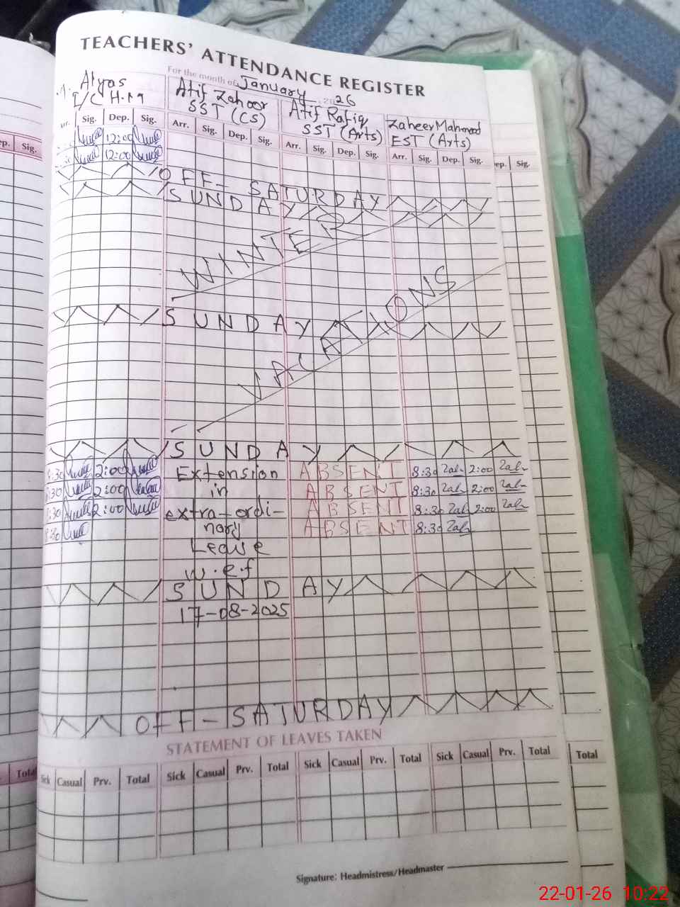 | 37**** | At**** Ra**** | SST Arts | Regular | 0 | 0 | 0 | 0 | 0 | 0 | 0 | 0 | 0 | Absent (Un-Authorized) |