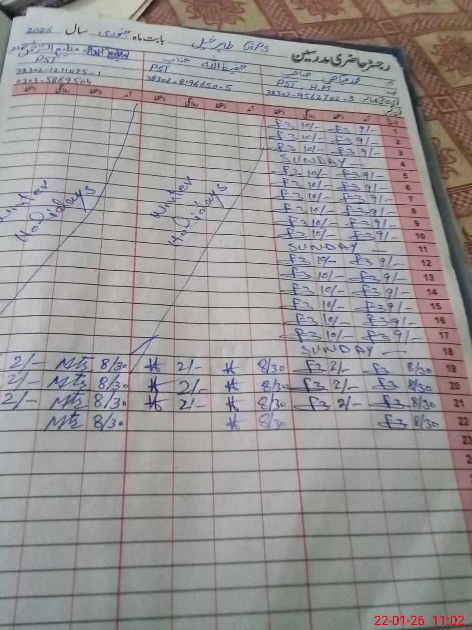 | Name: Mu**** Fi**** Designation: (School Headmaster's/Headmistress's) PST Phone/Cell Number: 03**** |
