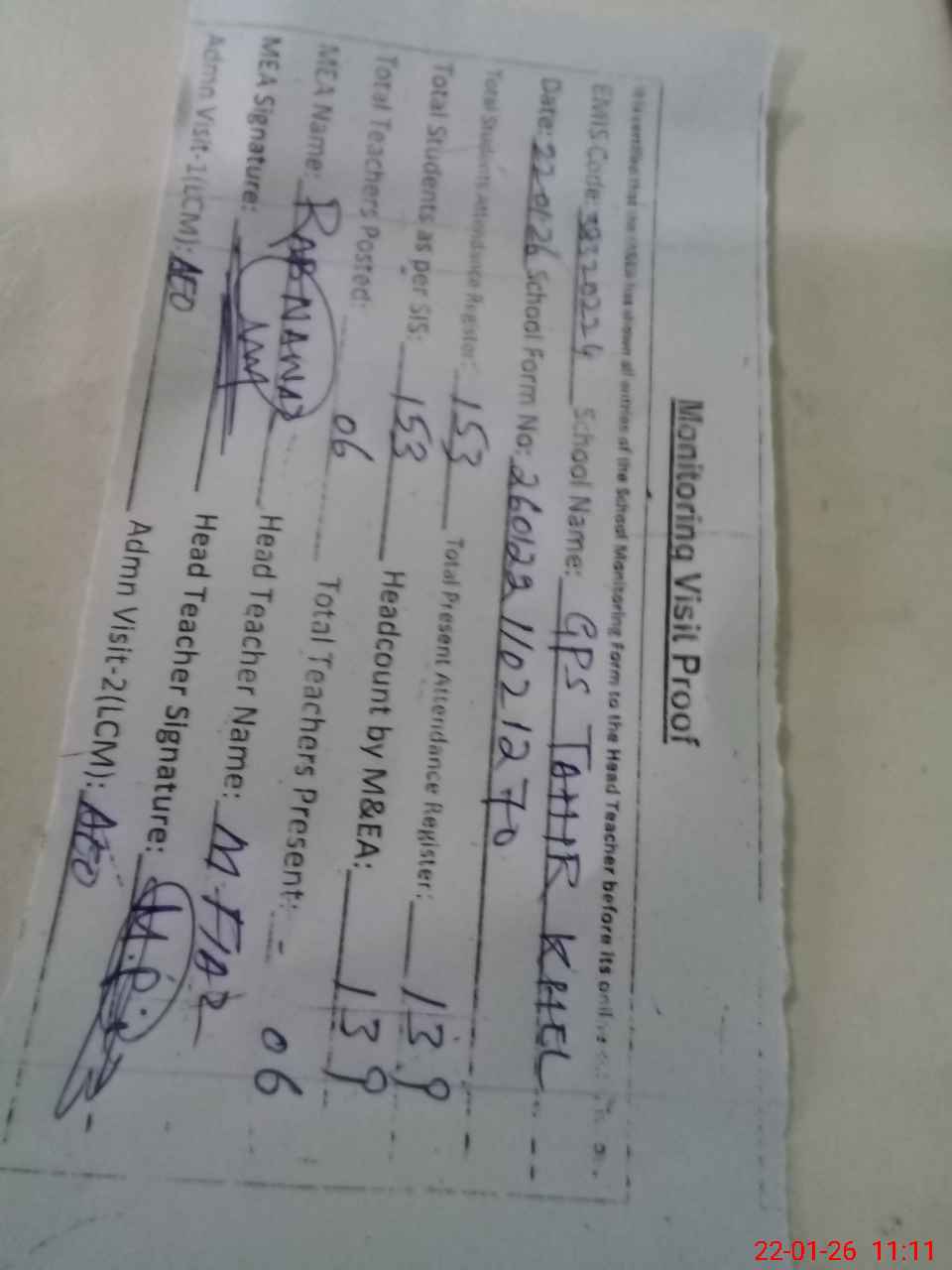 | EMIS Code: 38320224 | Name of School: GPS TAHIR KHEL | |||