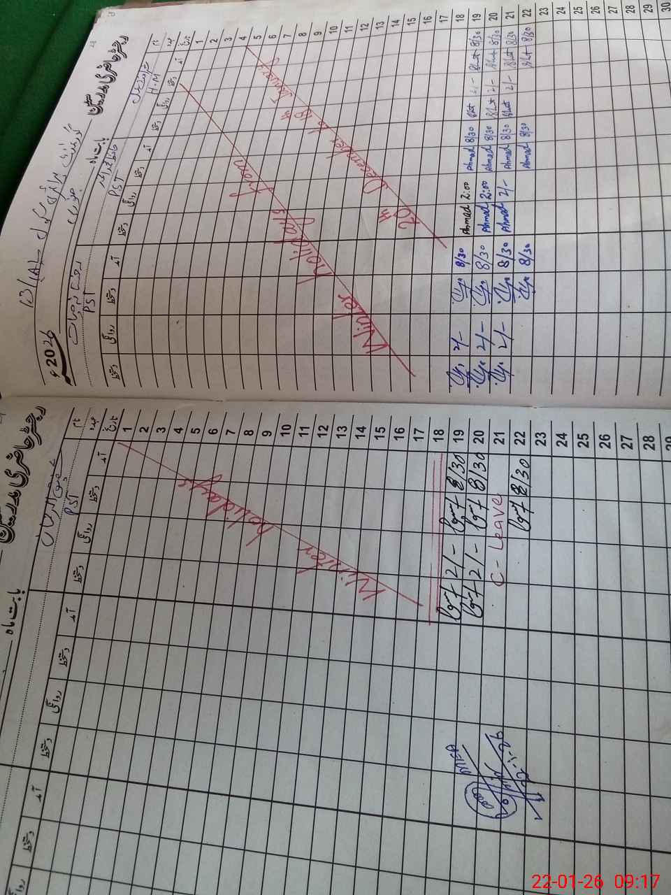 | CNIC | Full Name | Designation | R/C | Absence During Last Calender Month |