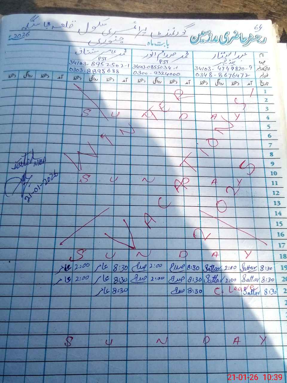 | Name: Ab**** Sa**** Designation: (School Headmaster's/Headmistress's) PST Phone/Cell Number: 03**** |