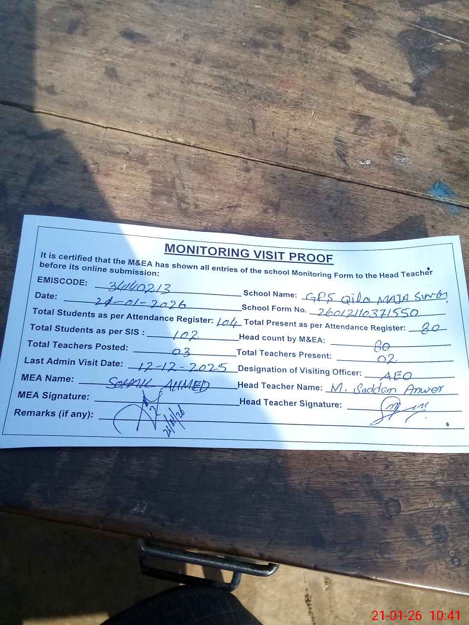 | EMIS Code: 34140213 | Name of School: GPS QILA MAJA SINGH | |||