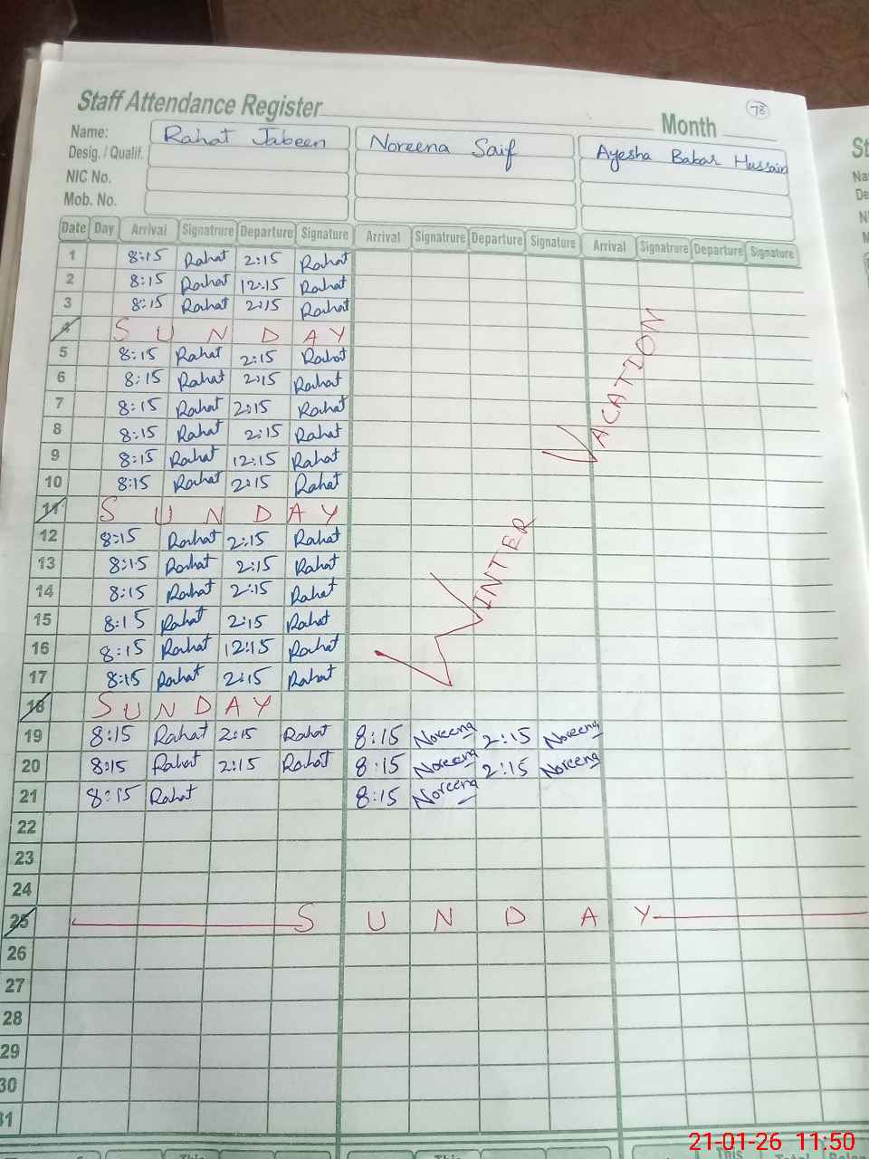 | 34**** | Ay**** Ba**** | SSE Science | Contract | 0 | 0 | 0 | 0 | 0 | 0 | 0 | 0 | 0 | Absent (Un-Authorized) |