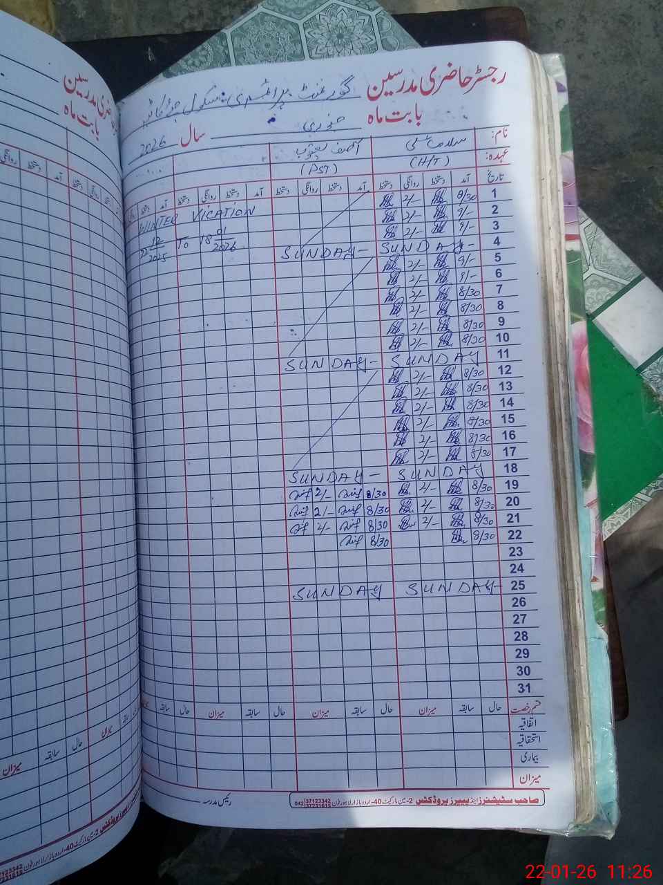 | CNIC | Full Name | Designation | R/C | Absence During Last Calender Month |