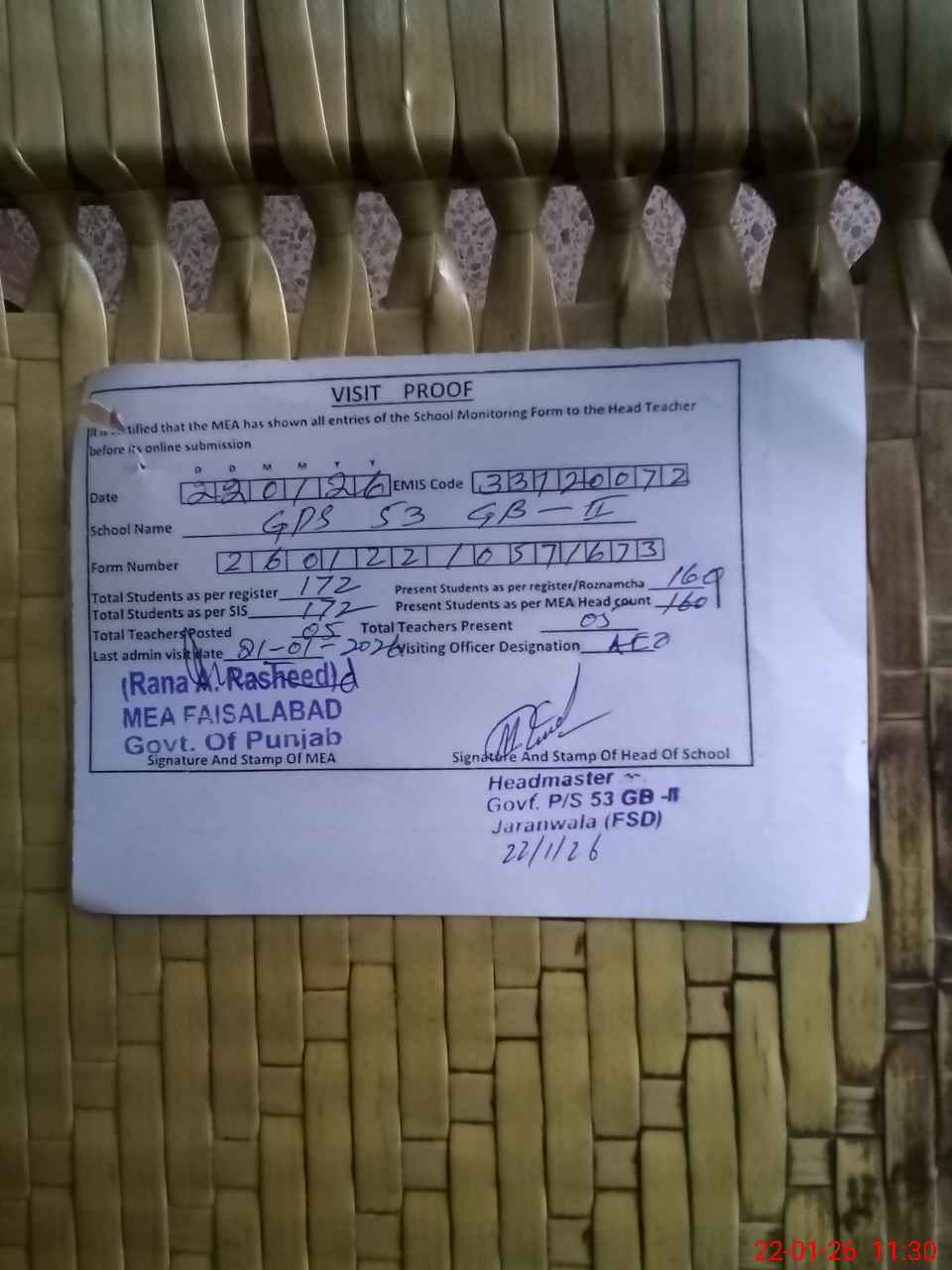 | EMIS Code: 33120072 | Name of School: GPS CHAK 53 GB II | |||