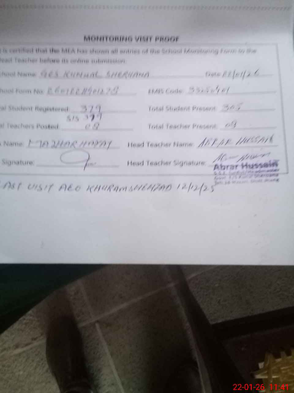 | Certified that this School was Inspected by the Undersigned MEA/DMO Today and the Information Stated Above is as Per Record. | |||||