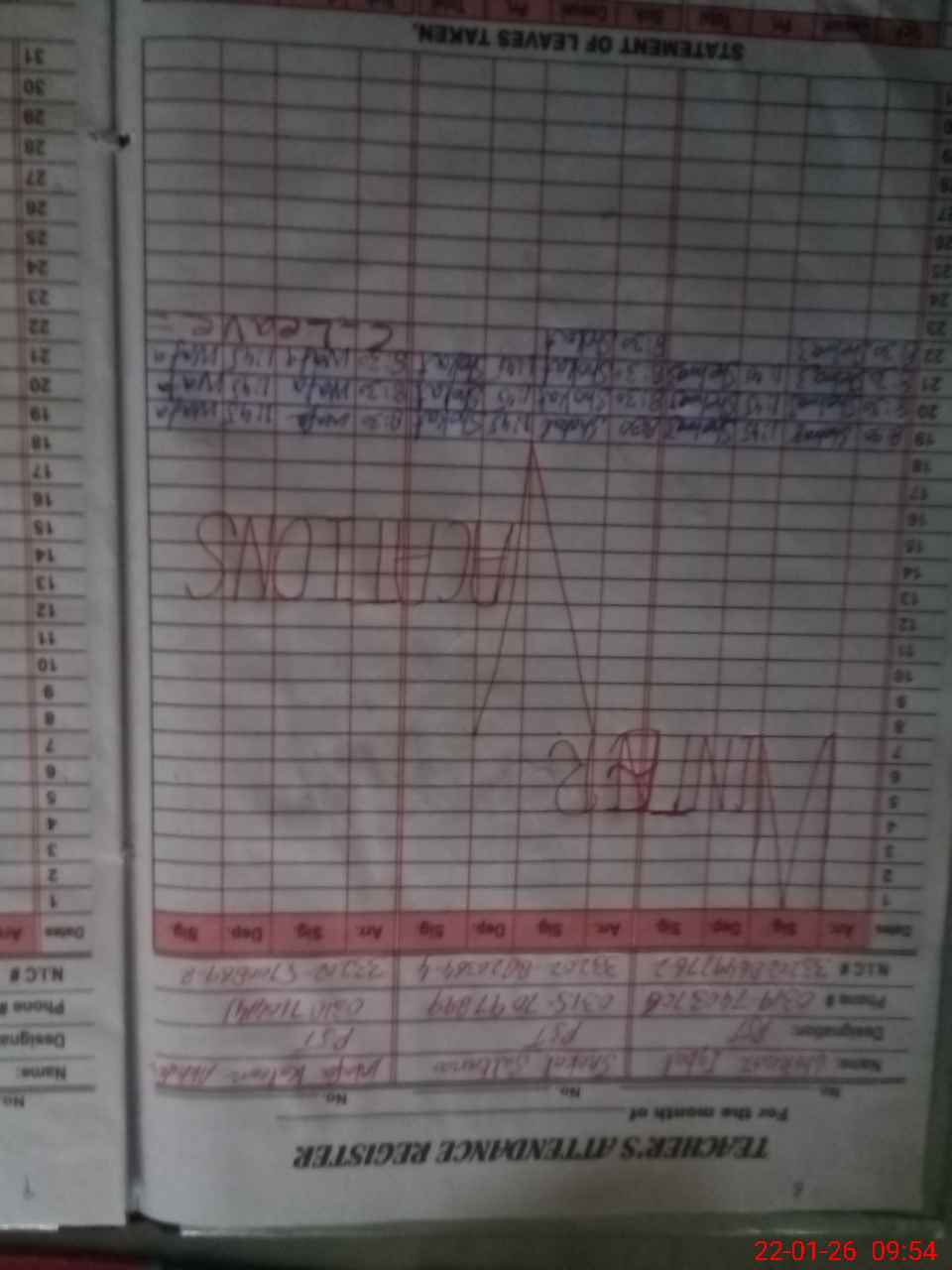 | 33**** | Wa**** Ka**** Ak**** | PST Science/Maths | Regular | 0 | 0 | 0 | 0 | 0 | 0 | 0 | 0 | 0 | Absent (Un-Authorized) |